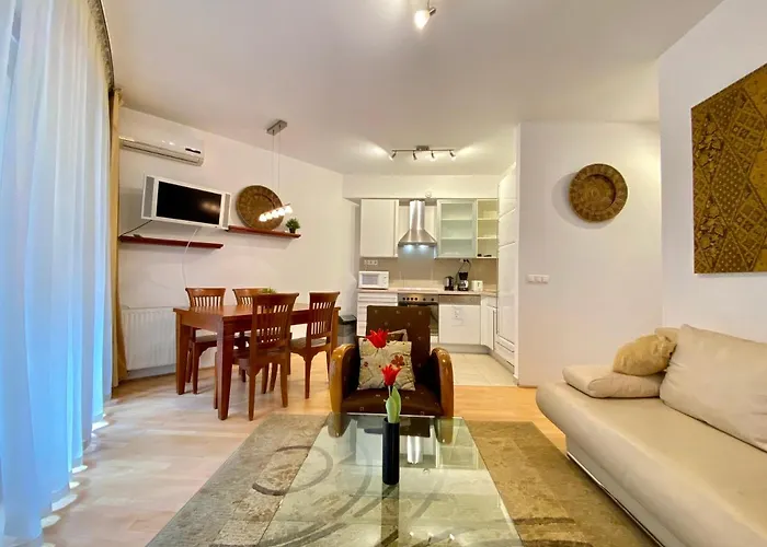 Diese Unterkünfte ist mit Selbstversorgungseinrichtungen wie einem Wasserkocher, einem Kühlschrank und einem Herd ausgestattet, so dass die Gäste ihre eigenen Mahlzeiten zubereiten können. Die nächstgelegene Bushaltestelle Akacfa utca befindet sich ein paar Schritte entfernt vom Apartment.